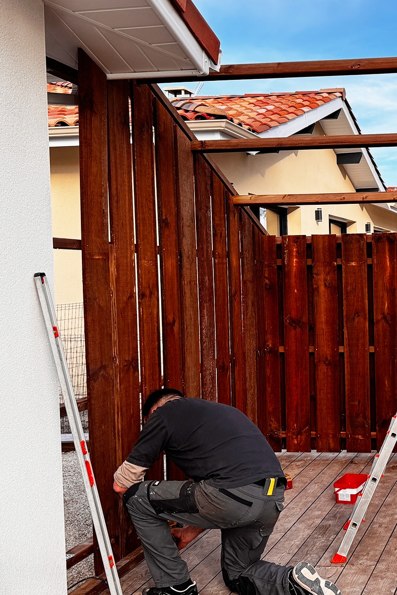 Pour délimiter vos espaces extérieurs ou préserver votre intimité, je réalise des palissades et clôtures bois sur mesure, avec une attention particulière portée aux finitions.